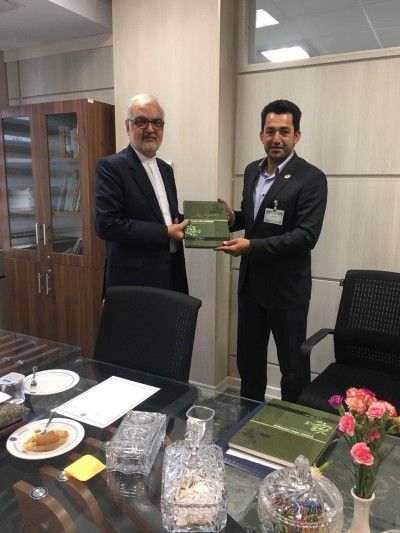 روز یکشنبه مورخ 7 مرداد ماه سال جاری، رئیس و هیات رئیسه محترم شورای ملی زیتون ایران در اولین همایش مشترک اتاق بازرگانی،صنایع،معادن و کشاورزی ایران با حضور سفرا و روسای نمایندگی های ایران در خارج از کشور حضور یافته و ضمن دیدار با وزیر محترم امور خارجه جناب آقای دکتر ظریف، در کارگروه های تخصصی با سفرا و نمایندگان وزارت امور خارجه در کشورهای ایتالیا،اسپانیا،پاکستان،ترکیه و یونان شرکت نمودند.